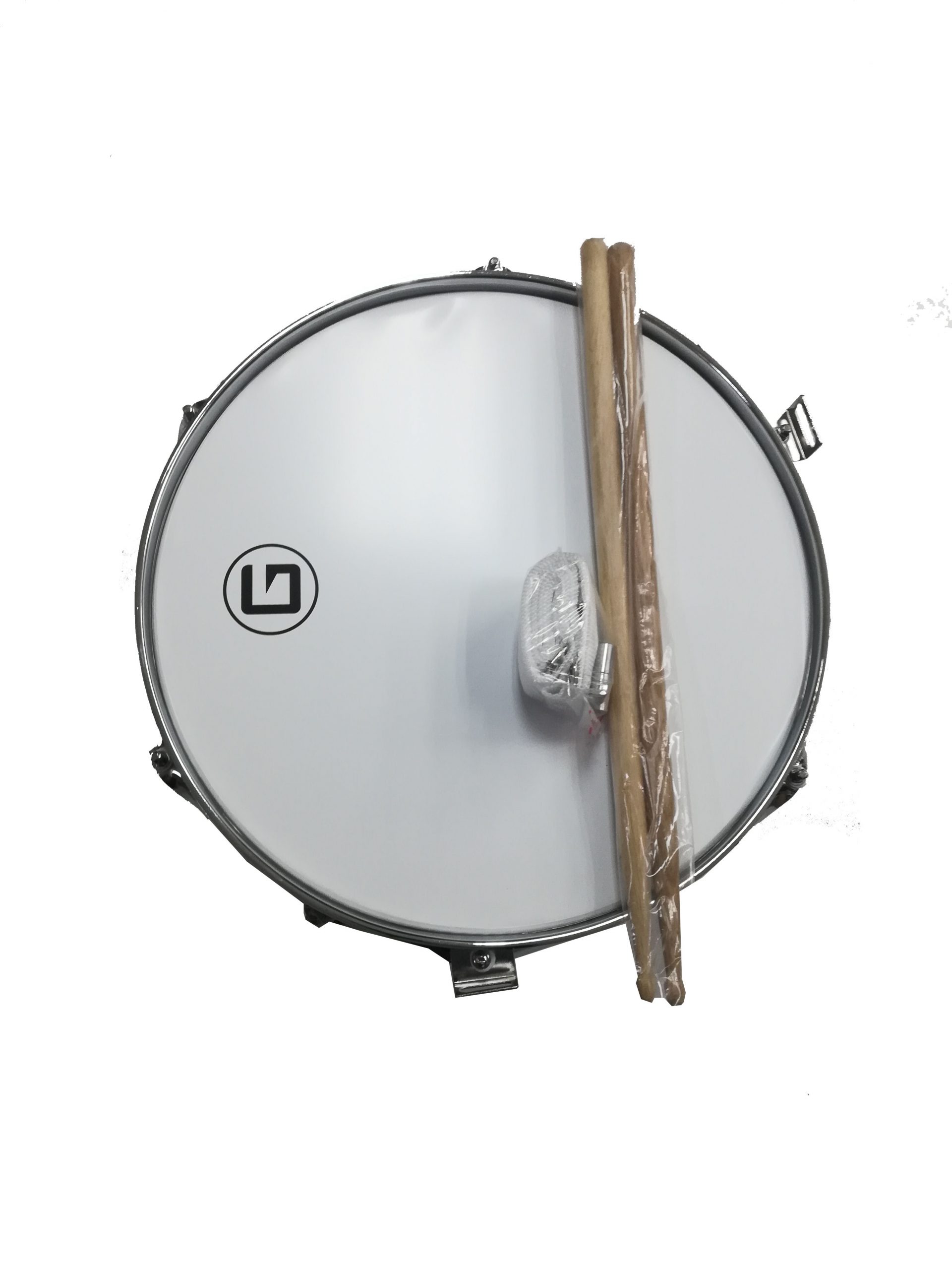 Accesorios: un par de palillos de tambor, correa, llave de tambor